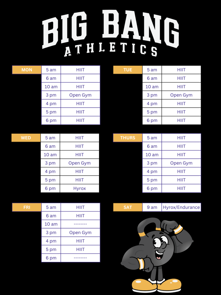 Whether you’re crushing HIIT, building endurance, tackling Hyrox, or leveling up your weight training, our diverse class schedule has something for every fitness goal. Every class is led by an experienced coach and offers three levels of training, allowing you to choose the option that best matches your ability and goals. Join us to challenge yourself, stay motivated, and push your limits with expert coaches and a community that supports your journey. Check out our full schedule and find the class that moves you!